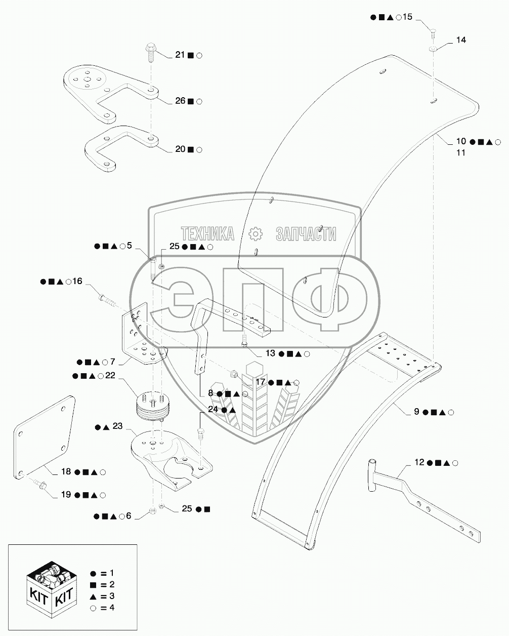 Каталог запасных частей к технике: New Holland T8. FENDERS, FRONT, AXLE MOUNTED, DYNAMIC