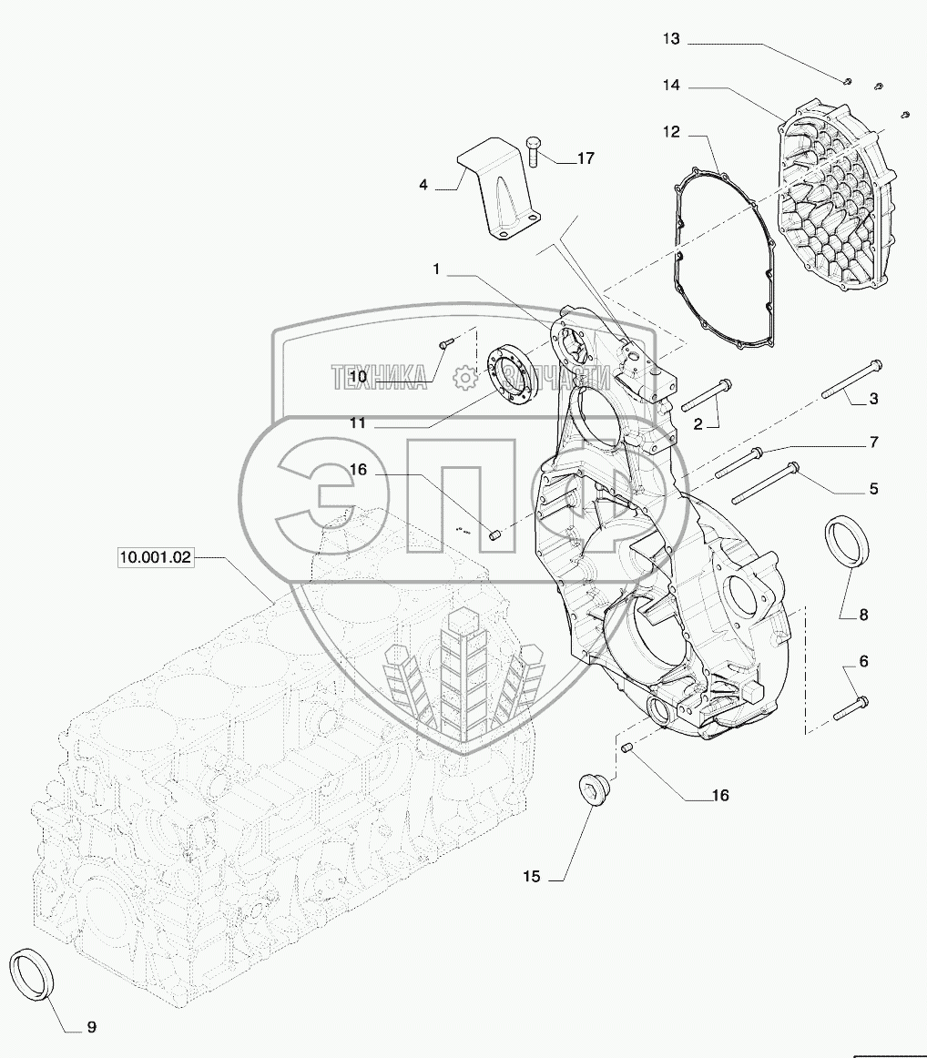 Каталог запасных частей к технике: New Holland T8. FLYWHEEL CASE (504356968 - 504134507)