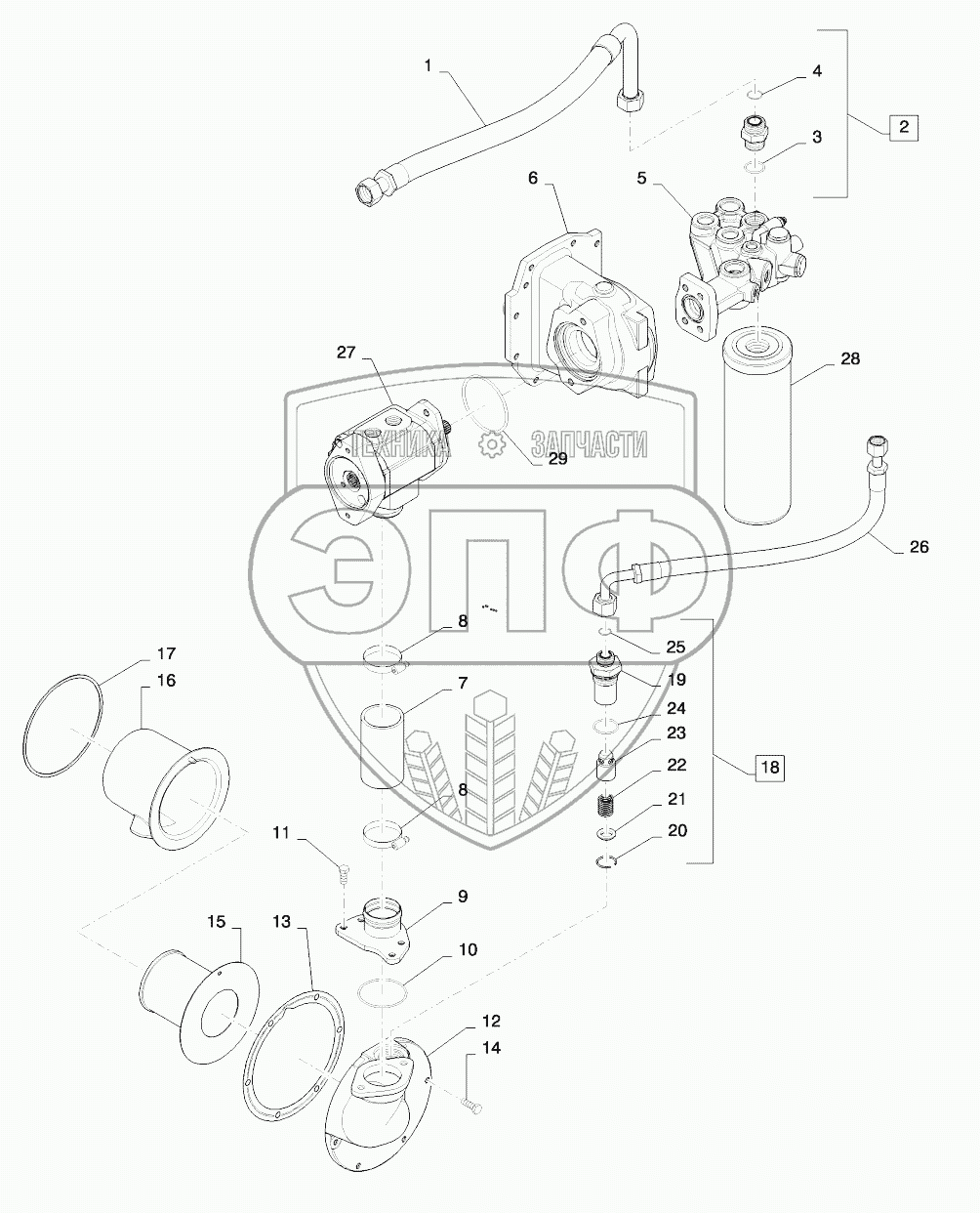 Каталог запасных частей к технике: New Holland T8. HYDRAULIC SYSTEM, CHARGE PUMP