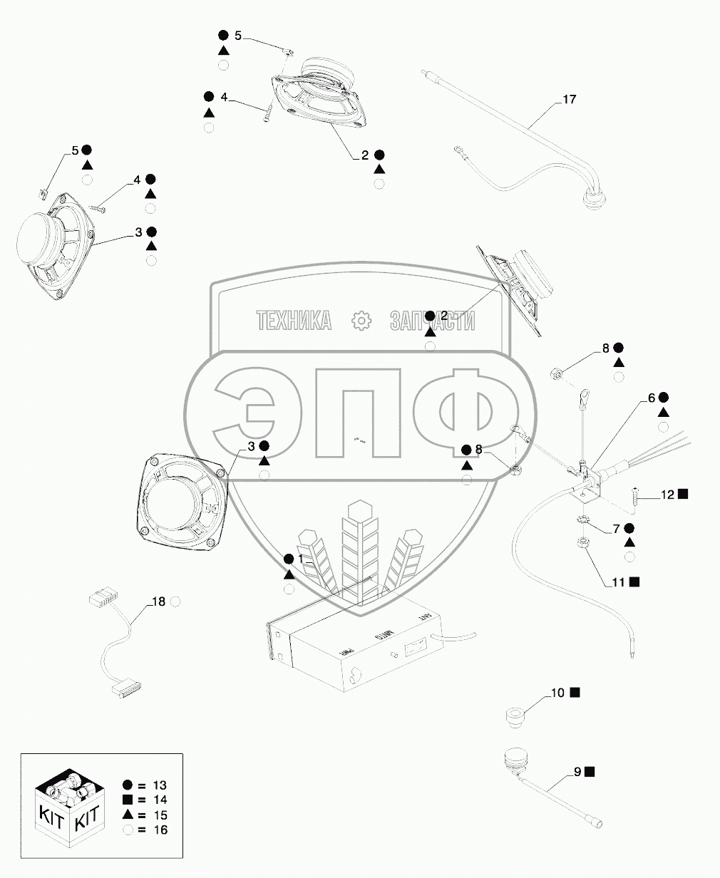 Каталог запасных частей к технике: New Holland T8. RADIOS, SPEAKERS and ANTENNAS