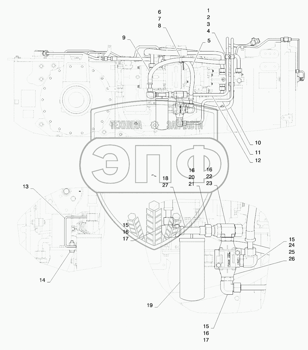Каталог запасных частей к технике: New Holland T8. TRANSMISSION HYDRAULIC LUBE LINES - POWERSHIFT