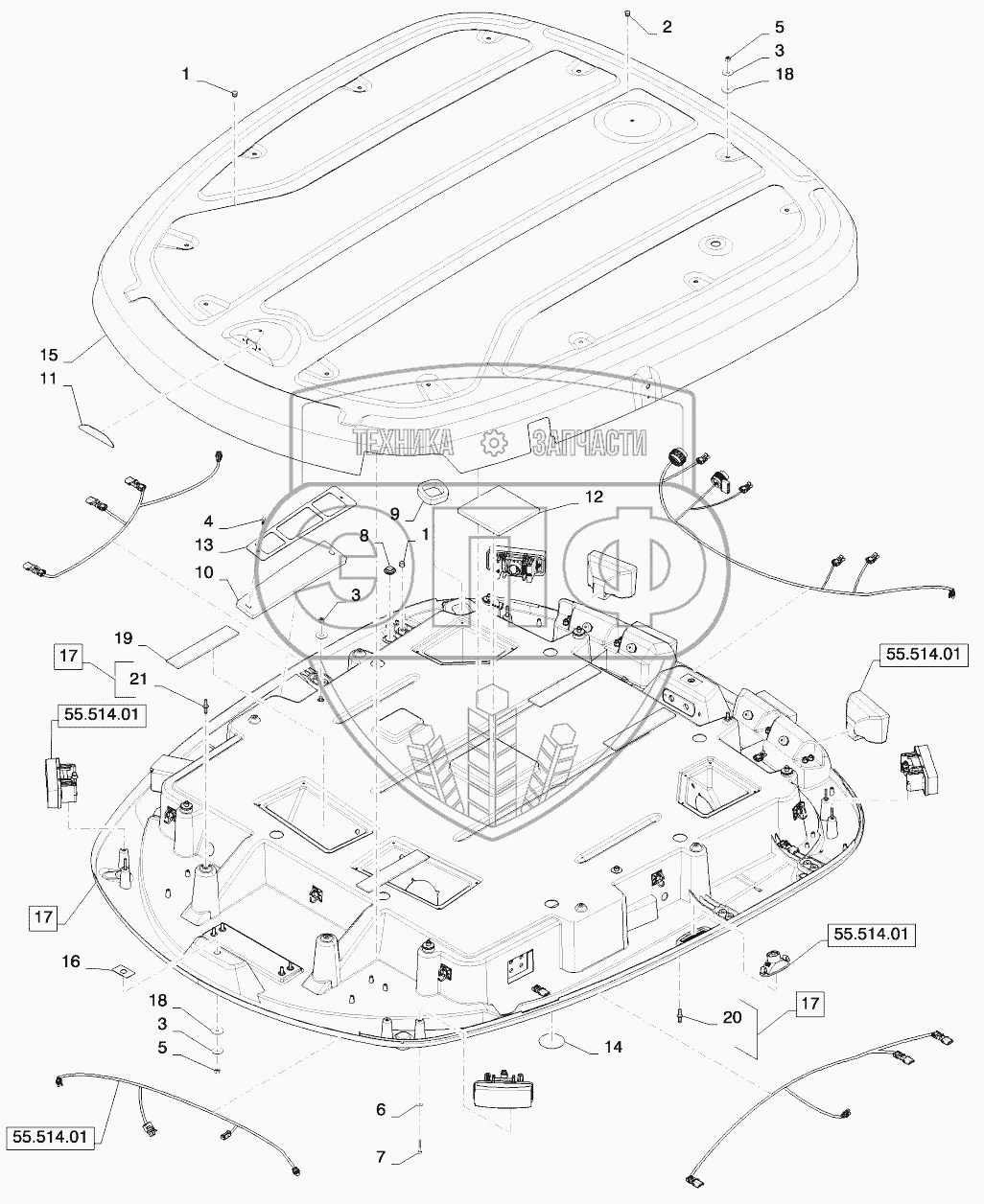 Каталог запасных частей к технике: New Holland T9.615, T9.670. CAB ROOF