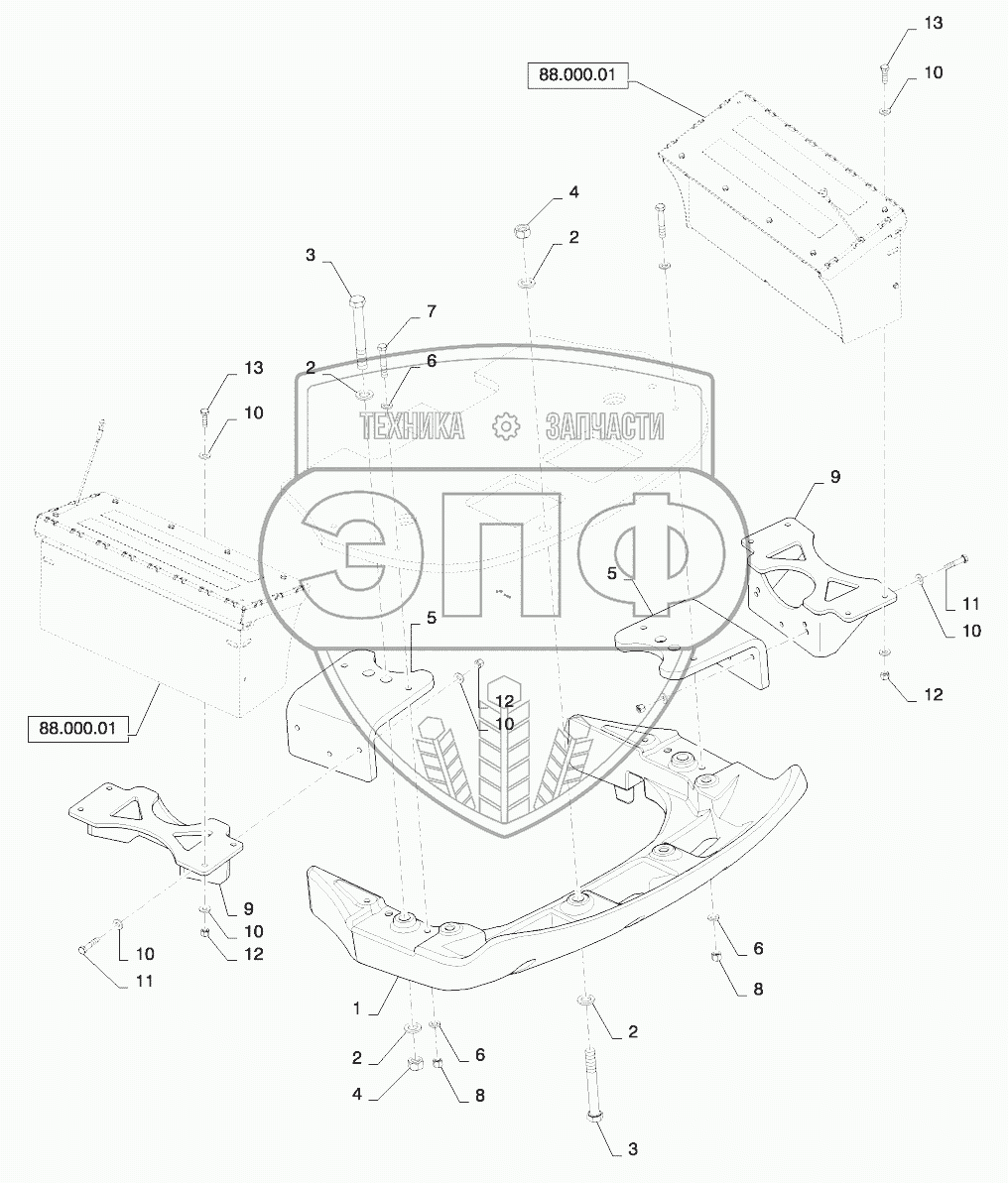 Каталог запасных частей к технике: New Holland T9.615, T9.670. FRONT BUMPER