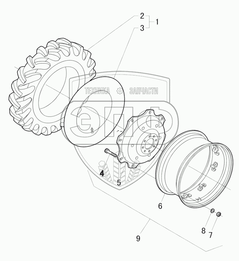 Каталог запасных частей к технике: New Holland TL5040. DRIVE WHEEL, RIM