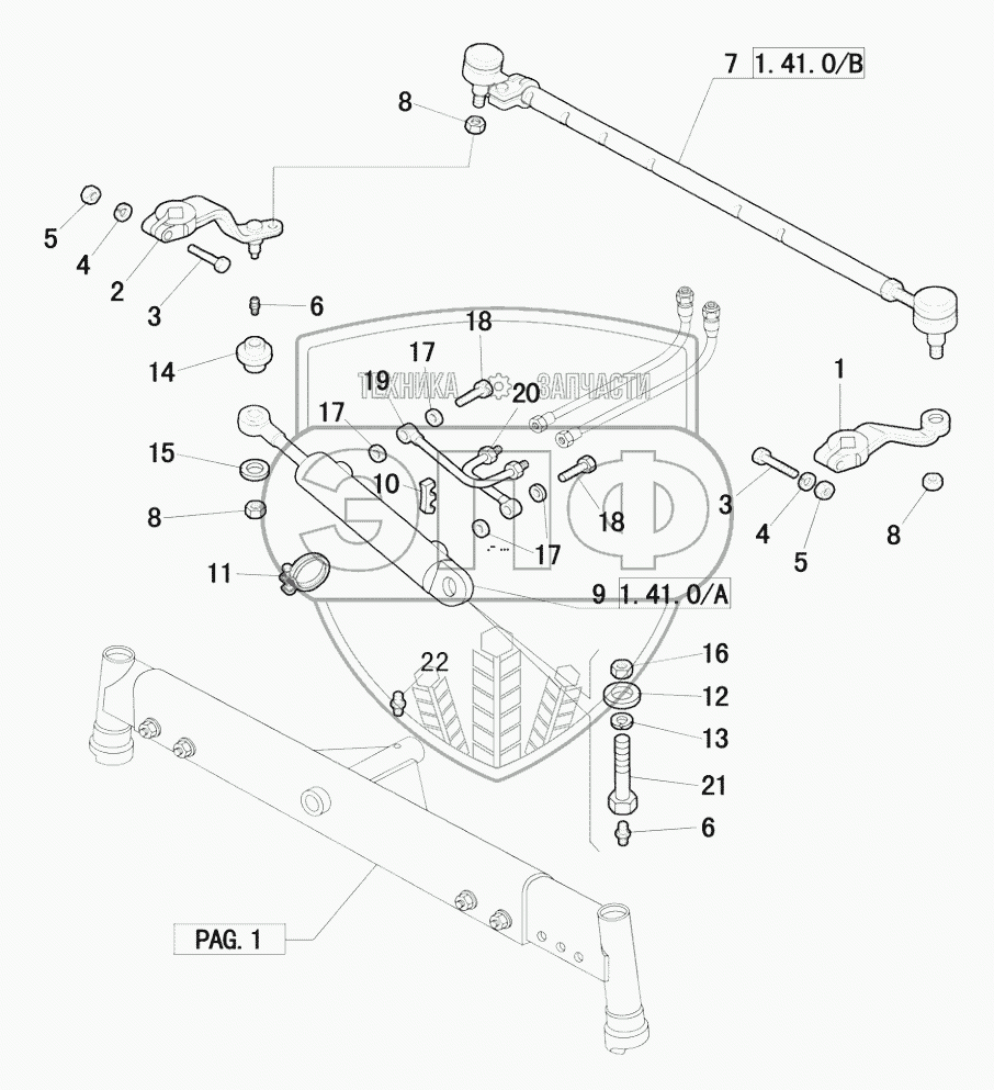Каталог запасных частей к технике: New Holland TL5040. FRONT AXLE 2WD - STEERING ROD