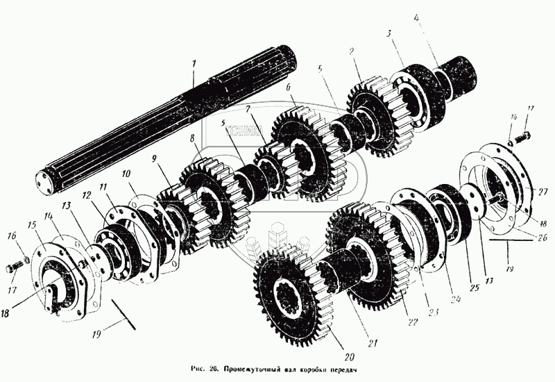 Каталог запасных частей к технике: ПТЗ К-700. Промежуточный вал коробки передач