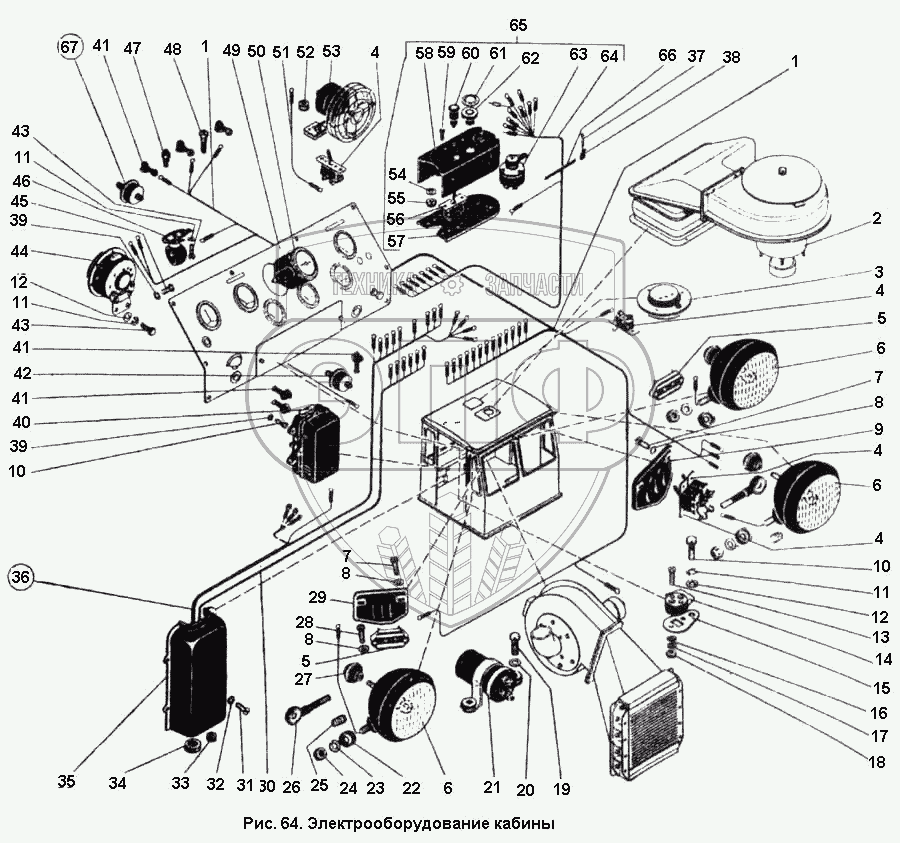 Каталог запасных частей к технике: ПТЗ К-701. Электрооборудование кабины