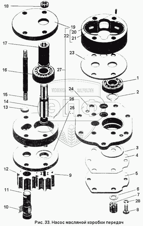 Каталог запасных частей к технике: ПТЗ К-701. Насос масляный коробки передач