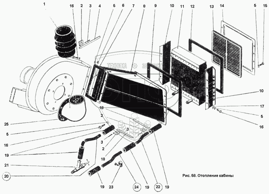 Каталог запасных частей к технике: ПТЗ К-701. Отопление кабины