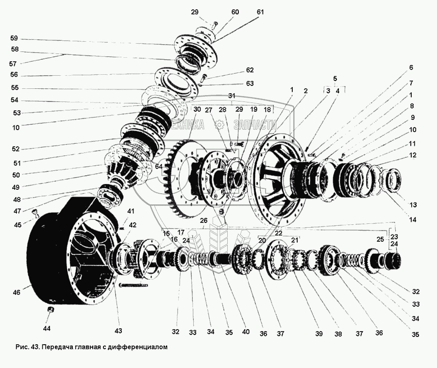 Каталог запасных частей к технике: ПТЗ К-701. Передача главная с дифференциалом