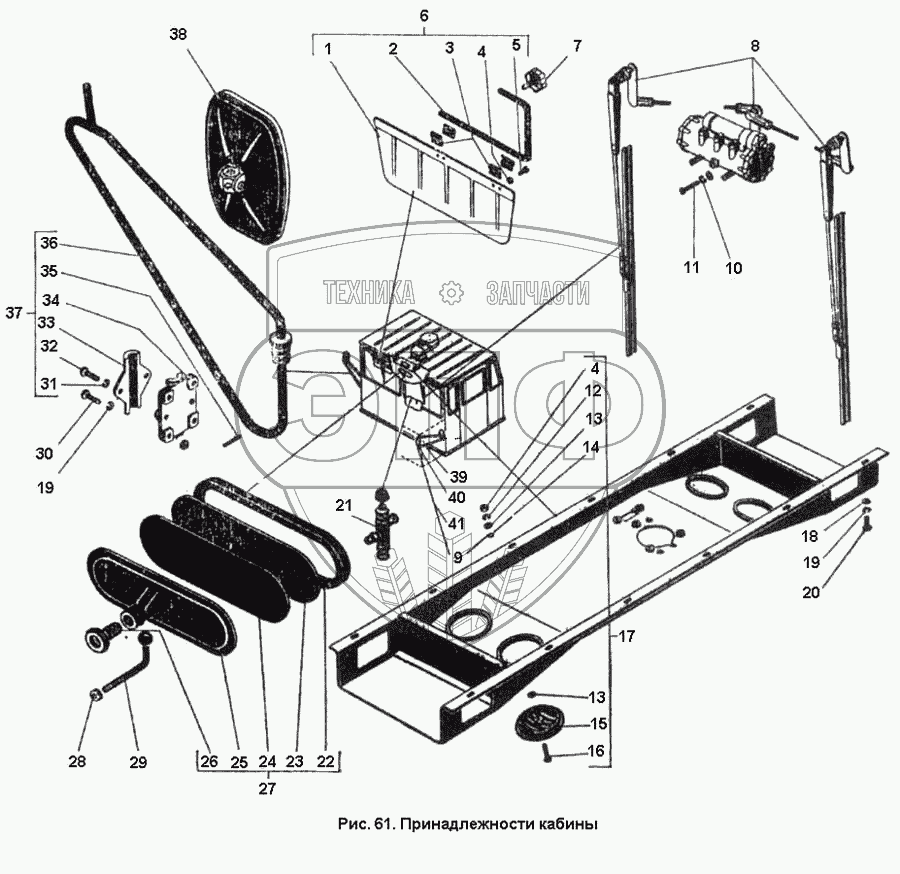 Каталог запасных частей к технике: ПТЗ К-701. Принадлежности кабины