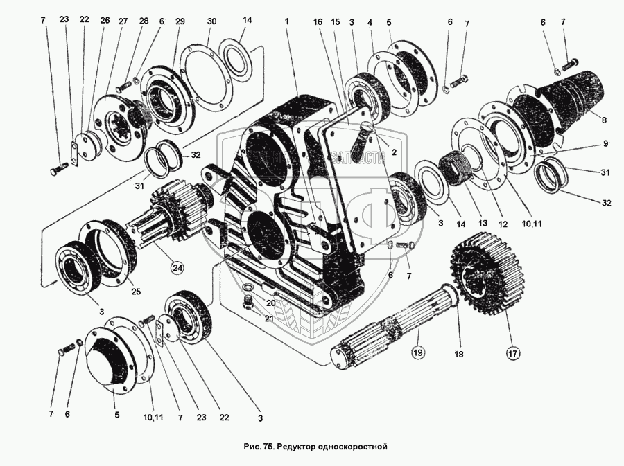 Каталог запасных частей к технике: ПТЗ К-701. Редуктор односкоростной