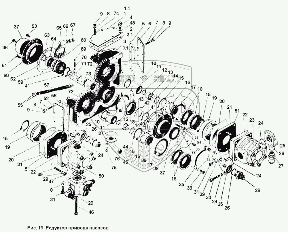 Каталог запасных частей к технике: ПТЗ К-701. Редуктор привода насоса