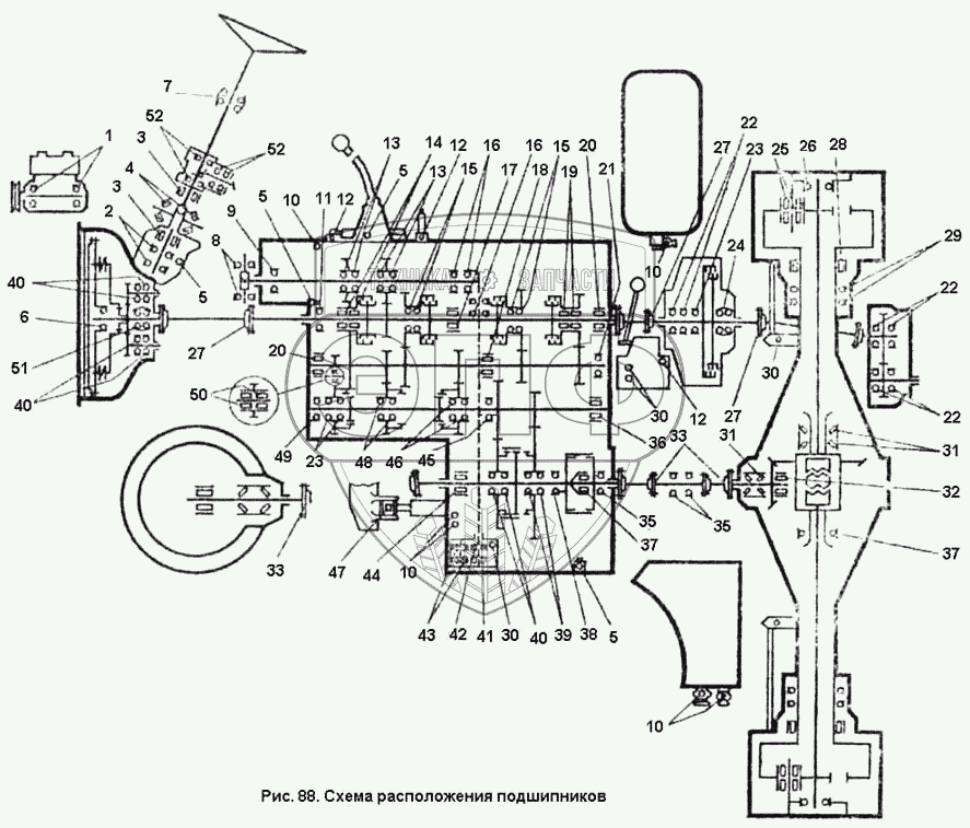 Каталог запасных частей к технике: ПТЗ К-701. Схема расположения подшипников