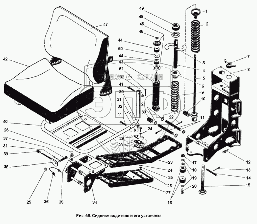 Каталог запасных частей к технике: ПТЗ К-701. Сиденье водителя и его установка