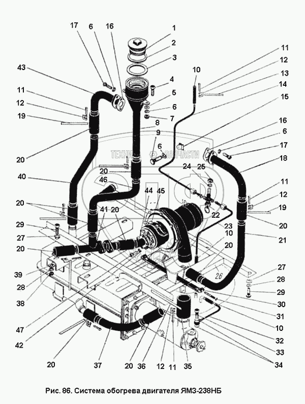 Каталог запасных частей к технике: ПТЗ К-701. Система обогрева двигателя ЯМЗ-238НБ