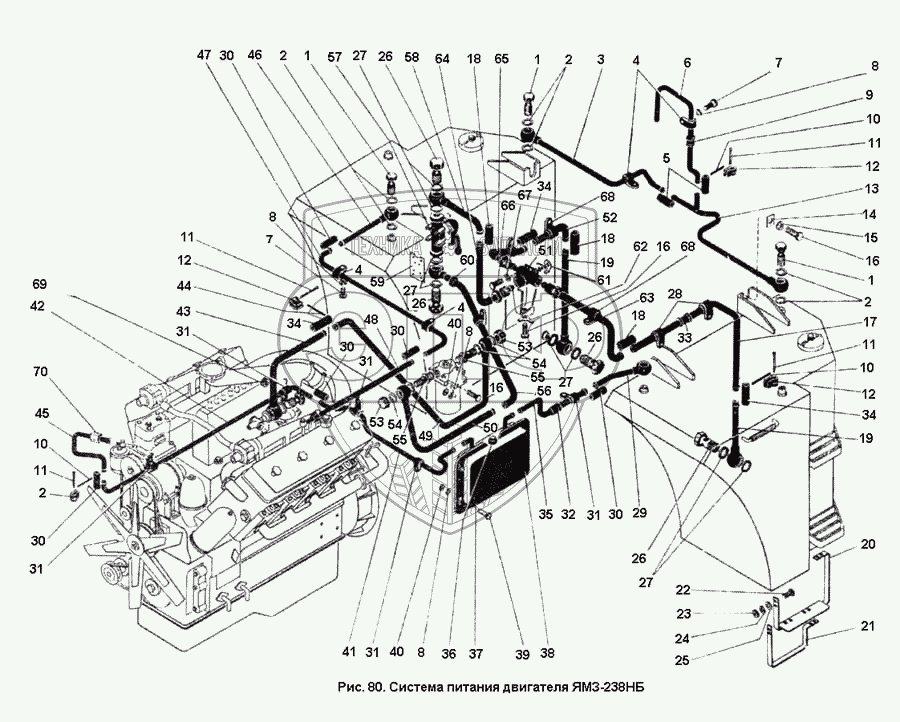Каталог запасных частей к технике: ПТЗ К-701. Система питания двигателя ЯМЗ-238НБ