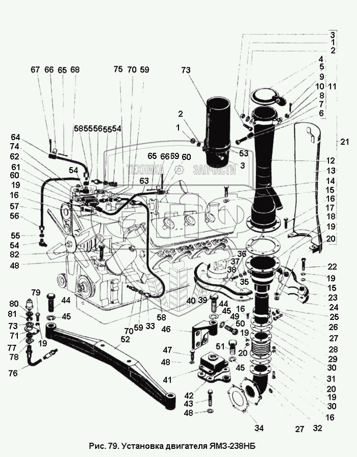 Каталог запасных частей к технике: ПТЗ К-701. Установка двигателя ЯМЗ-238НБ