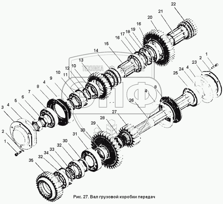 Каталог запасных частей к технике: ПТЗ К-701. Вал грузовой коробки передач