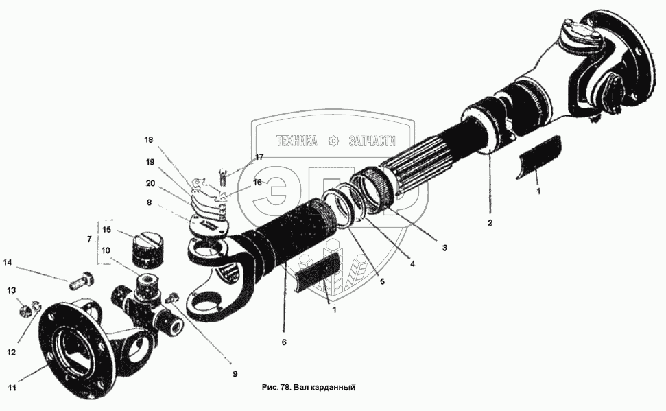 Каталог запасных частей к технике: ПТЗ К-701. Вал карданный