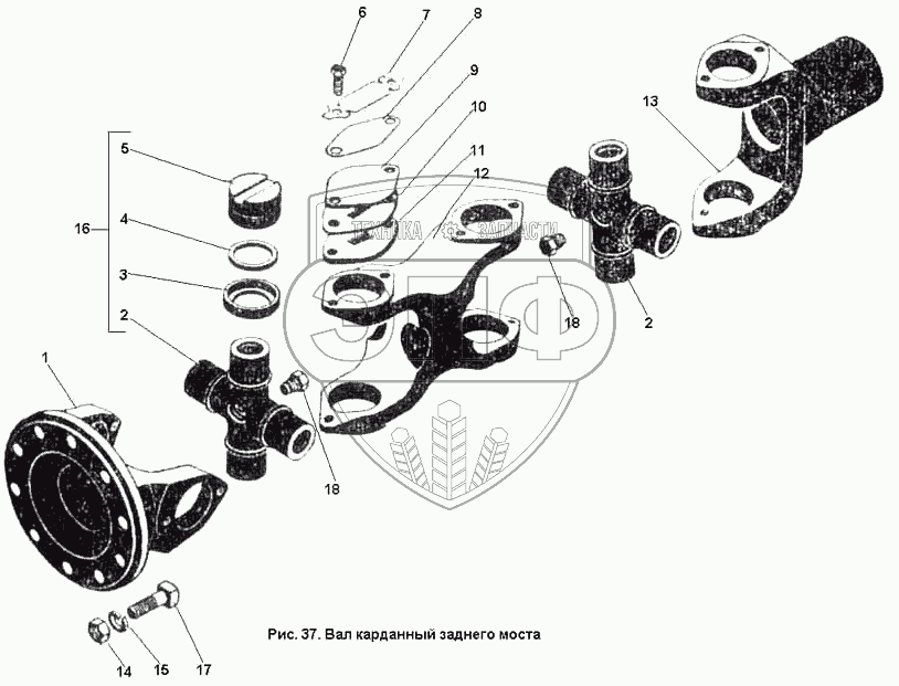 Каталог запасных частей к технике: ПТЗ К-701. Вал карданный заднего моста