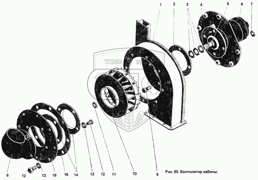 Каталог запасных частей к технике: ПТЗ К-701. Вентилятор кабины