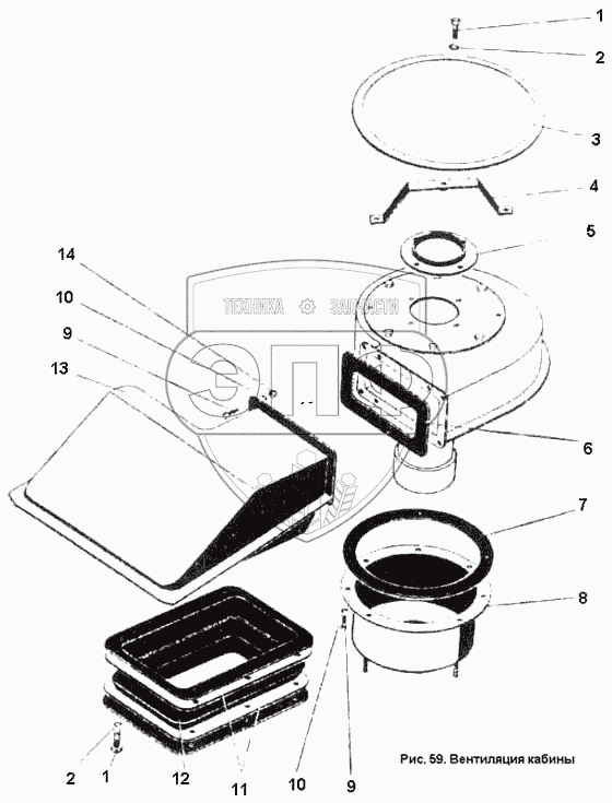 Каталог запасных частей к технике: ПТЗ К-701. Вентиляция кабины