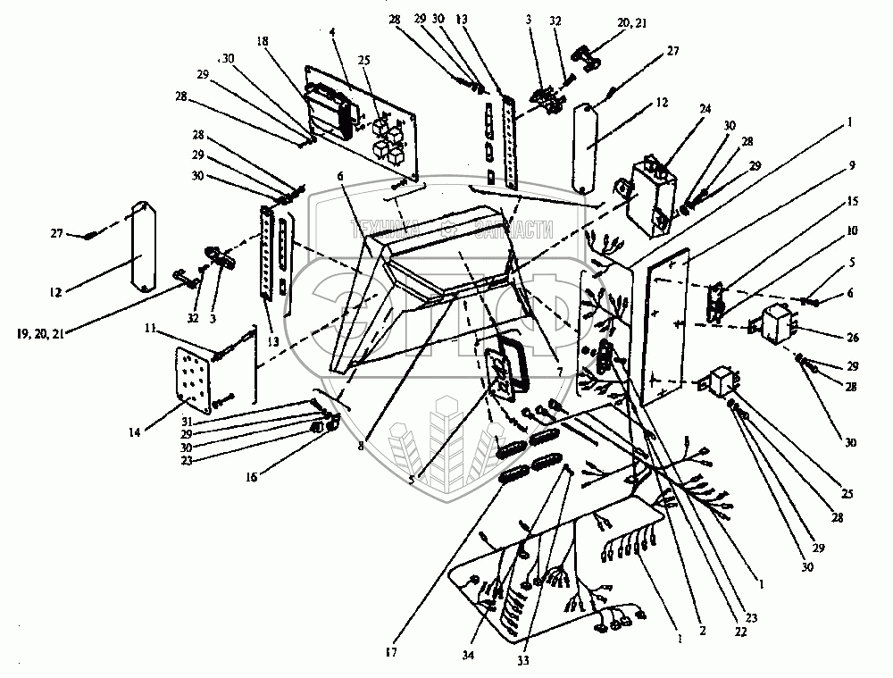 Каталог запасных частей к технике: ПТЗ K-744P1. Электрооборудование передней стенки кабины