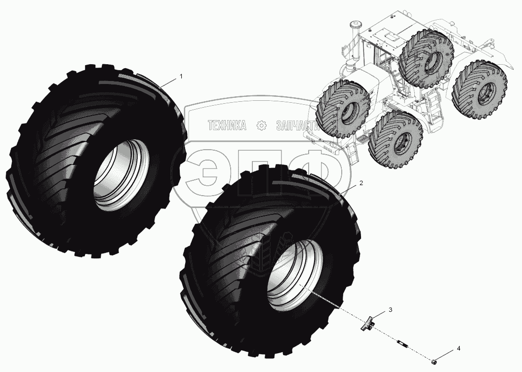 Каталог запасных частей к технике: ПТЗ К-744Р1 "Стандарт". 700А.31.00.000 Колеса