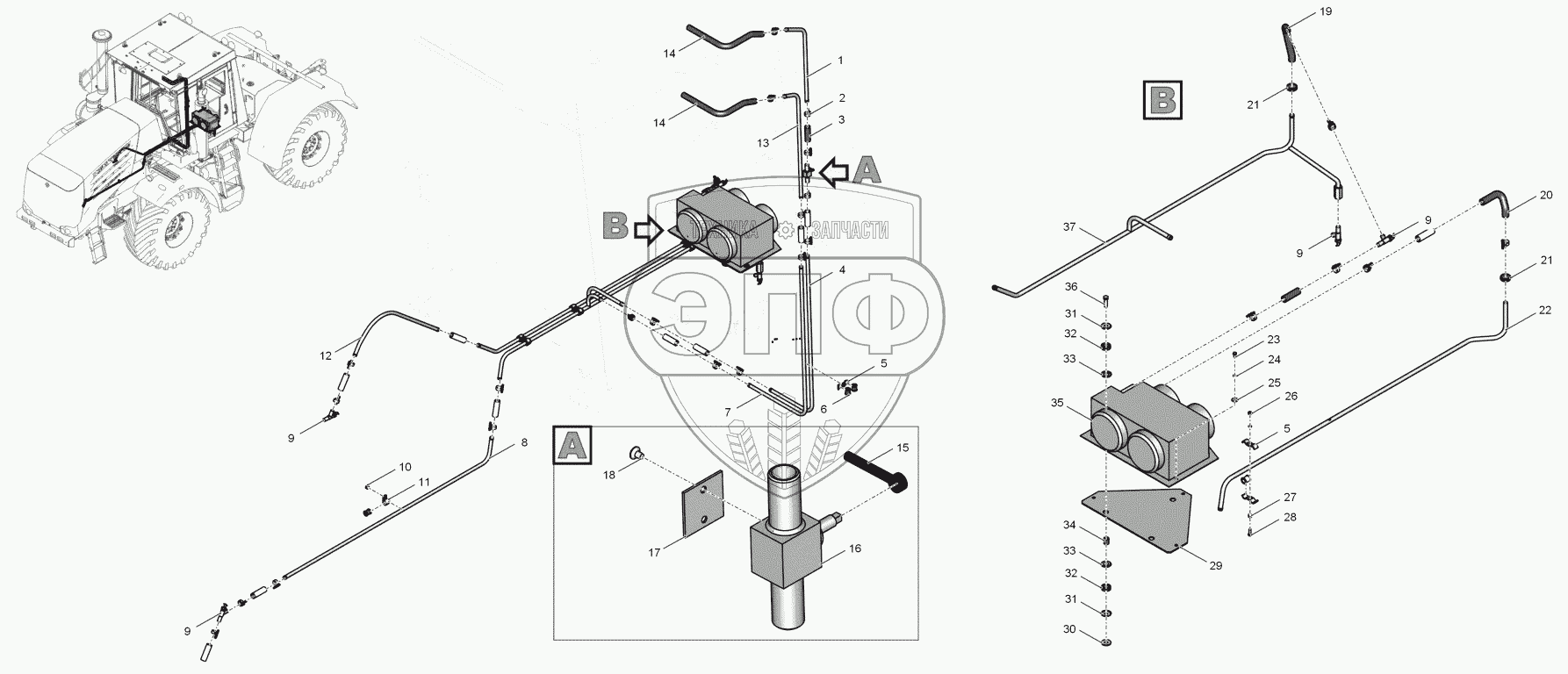 Каталог запасных частей к технике: ПТЗ К-744Р1 "Стандарт". 744Р1-8110000 Система отопления