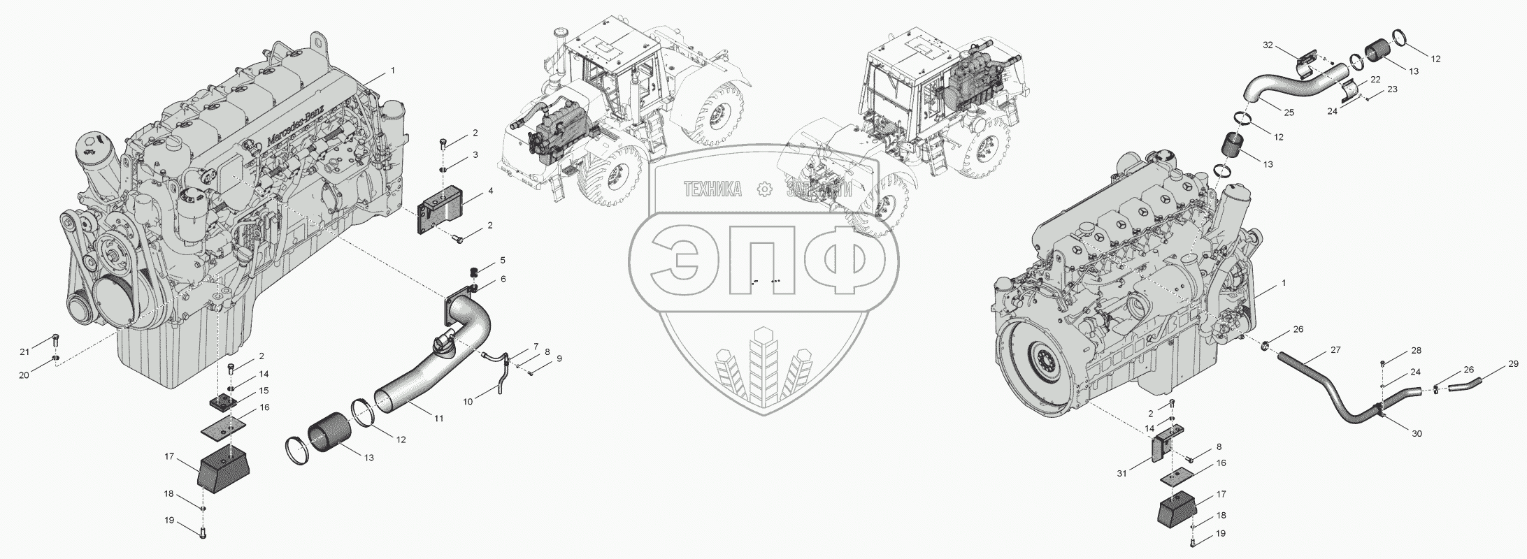 Каталог запасных частей к технике: ПТЗ К-744Р2 "Премиум". 744Р2М-1000000 Установка двигателя
