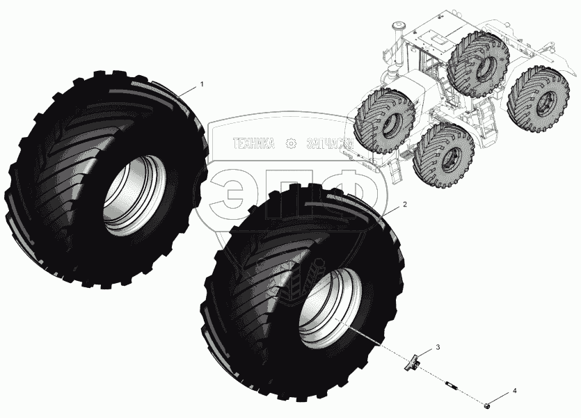 Каталог запасных частей к технике: ПТЗ К-744Р2 "Стандарт". 700А.31.00.000 Колеса