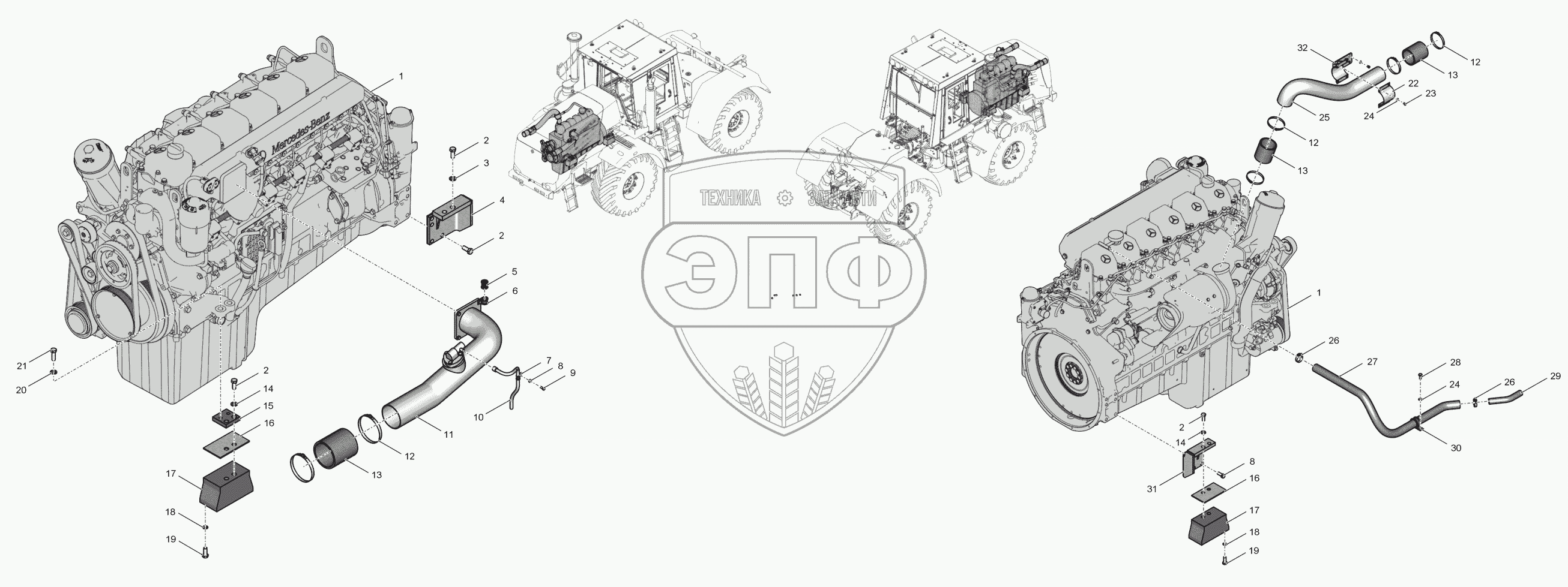 Каталог запасных частей к технике: ПТЗ К-744Р4 "Премиум". 744Р3М-1000000-01 Установка двигателя