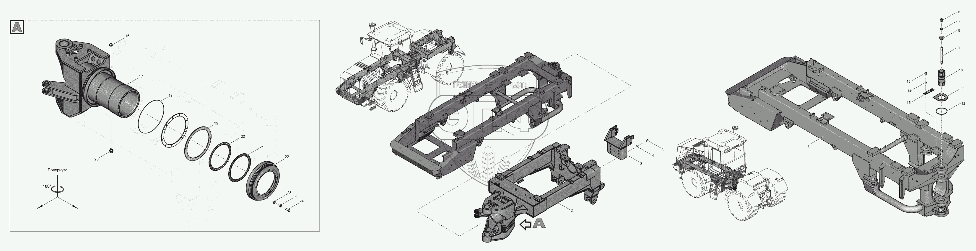 Каталог запасных частей к технике: ПТЗ К-744Р4 "Премиум". 744Р3М-2800000-2 Рама