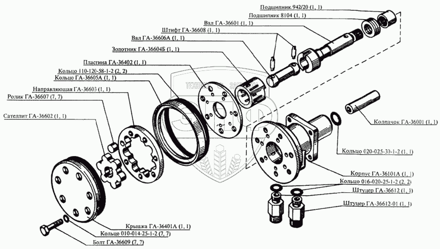 Каталог запасных частей к технике: РСМ CK-5М-1 «Нива». Насос планетарный