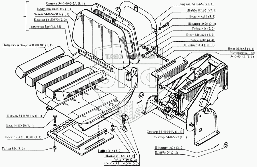 Каталог запасных частей к технике: РСМ CK-5М-1 «Нива». Откидное сиденье водителя