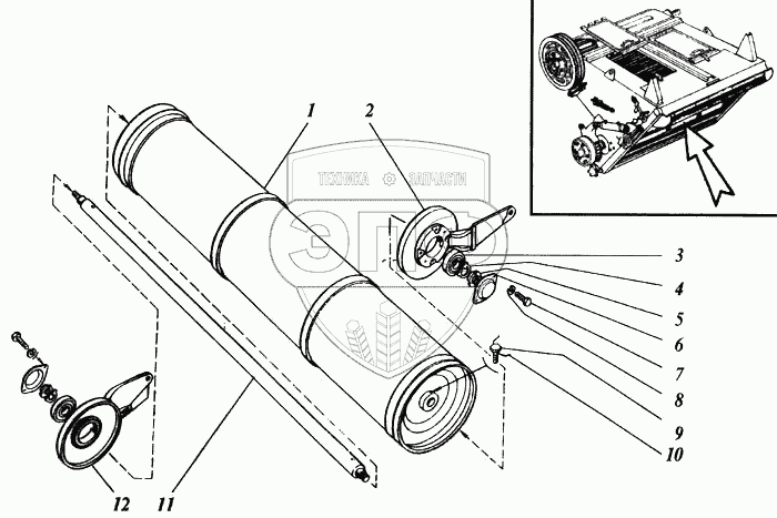 Каталог запасных частей к технике: РСМ Дон 1200. Вал нижний транспортера наклонной камеры