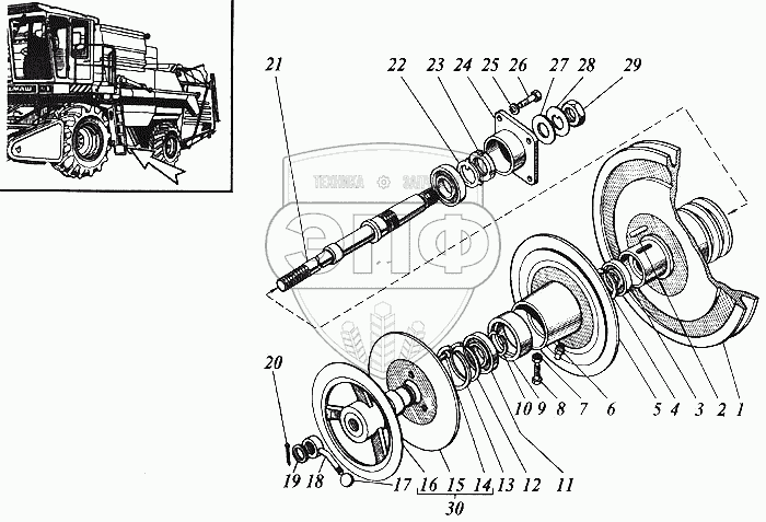 Каталог запасных частей к технике: РСМ Дон 1500А. Контрпривод вентилятора