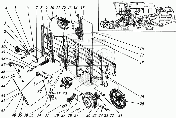 Каталог запасных частей к технике: РСМ Дон 1500А. Панель левая каркаса молотилки