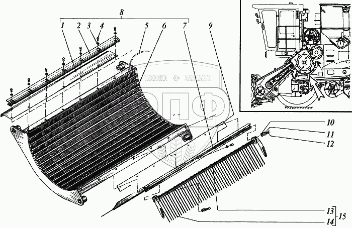 Каталог запасных частей к технике: РСМ Дон 1500А. Подбарабанье
