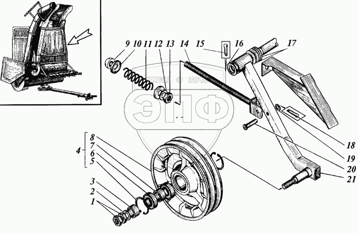 Каталог запасных частей к технике: РСМ Дон 1500А. Шкив натяжной