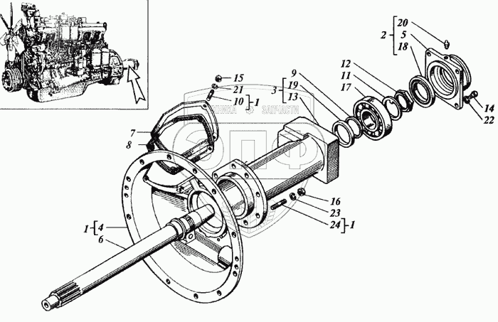 Каталог запасных частей к технике: РСМ Дон 1500А. Установка вала съема мощности