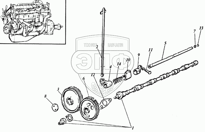 | 5 | 01-05с14 | Ось толкателей (с заглушками 01-0542) | Нет на складе | |