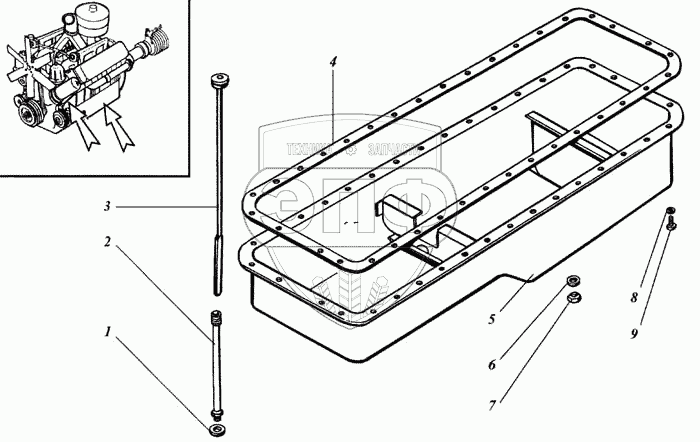 Каталог запасных частей к технике: РСМ Дон 1500Б. Поддон блока цилиндров