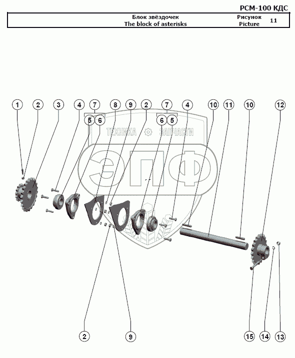 Каталог запасных частей к технике: РСМ-100 (Дон-680М). Блок звёздочек