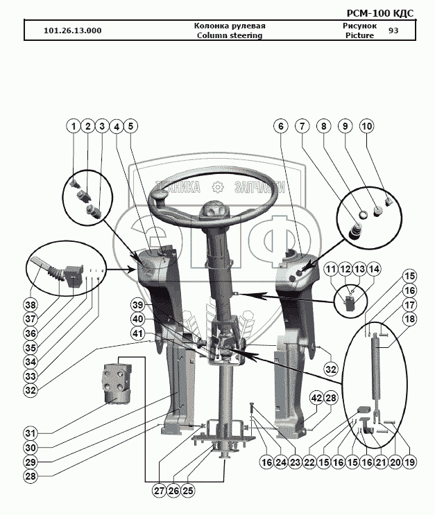 Каталог запасных частей к технике: РСМ-100 (Дон-680М). Колонка рулевая