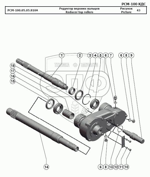 Каталог запасных частей к технике: РСМ-100 (Дон-680М). Редуктор верхних вальцев