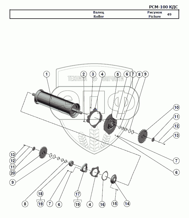 Каталог запасных частей к технике: РСМ-100 (Дон-680М). Валец