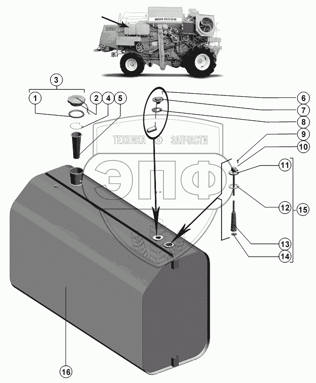 Каталог запасных частей к технике: РСМ-10Б "Дон-1500Б". Бак топливный