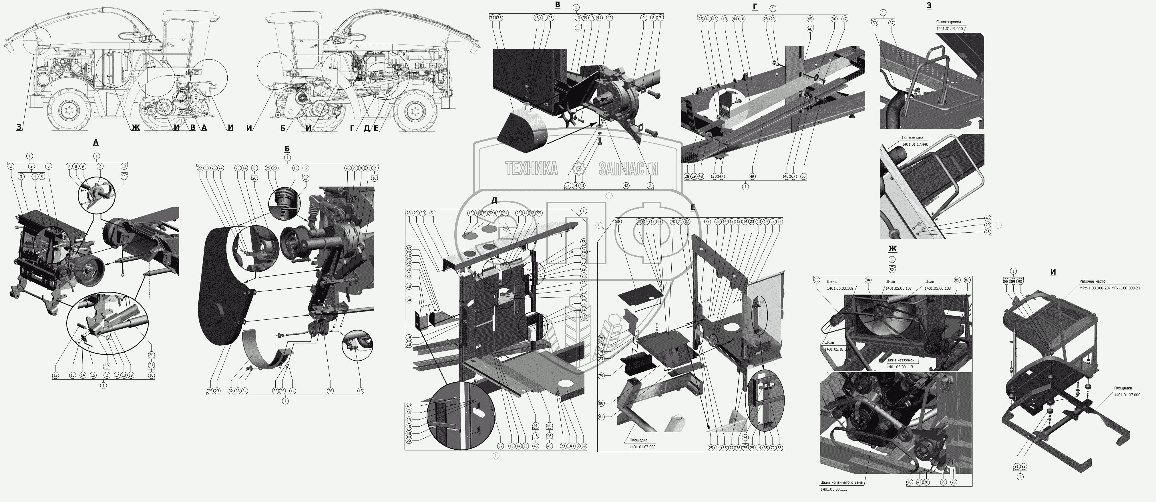 Каталог запасных частей к технике: РСМ-1401. Агрегат измельчающий
